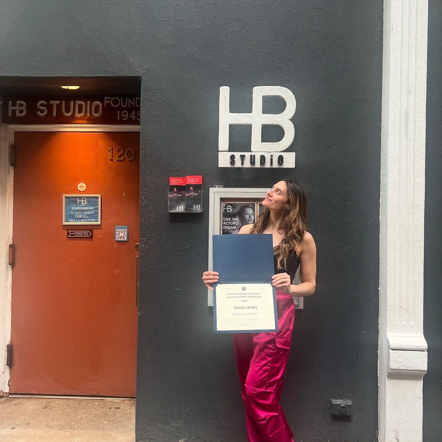 August 1st, 2025 - Erica received her certificate of attendance from world renowned acting studio HB Studio NYC.