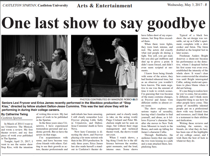 “Erica James has also made herself a stand out in Castleton’s theater department, and is clearly ready to take on the acting world.”
